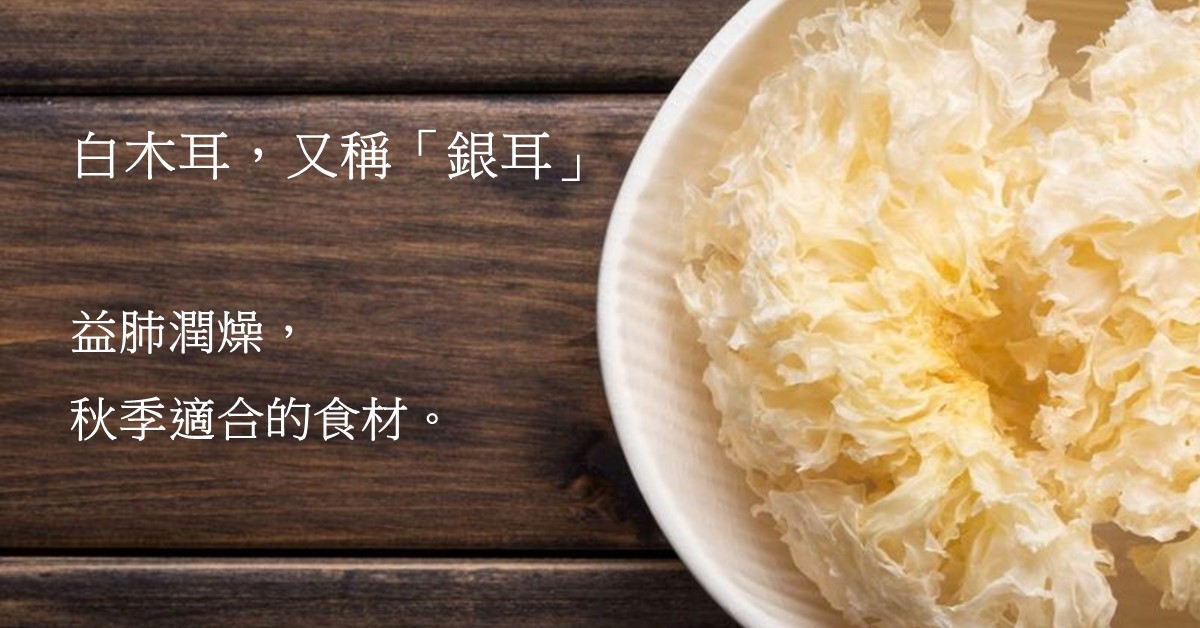 由於秋季氣溫變涼變乾燥的關係,容易讓本身患有呼吸道疾病的民眾,舊疾復發,像是患有氣喘、呼吸道過敏、老人小孩的慢性支氣管炎等,可能原本控制好,但一到了秋燥的時分,症狀日漸明顯,建議這類的民眾可以適量食用一些可以滋潤呼吸道、益肺潤燥的食材,像是白木耳(銀耳)、山藥、秋梨、蓮藕、蓮子等,都可以滋身養肺,溫補身體。