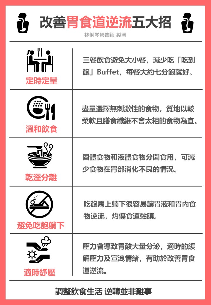 身邊實在有太多人有這樣的腸胃問題,也就是「胃食道逆流」!我們一天大致上至少會吃三餐,但患有胃食道逆流的人若是吃錯食物或是特殊情況下,可說是每餐飯後都深深困擾著他們。「火燒心」的戲碼幾乎天天上映,真的是既不舒服又無奈。因此,俐岑營養師想要與大家分享一些關於有助於逆轉胃食道逆流的飲食觀念,相信可以幫助你控制胃食道逆流的症狀,減少它發生的機會。